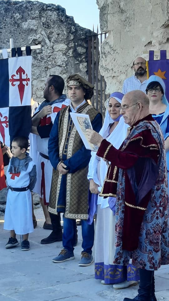 En la Huerta del Duque de esta noble villa de Cuéllar, a 19 de agosto de 2022, a todas las personas presentes en este acto mi agradecimiento personal por esta distinción honorable que me hacen, de un modo especial a quienes han considerado que soy yo, precisamente, quien debe estar hoy aquí. Se me otorga el título de Alférez Mayor de Cuéllar que espero ser digna de ostentar.